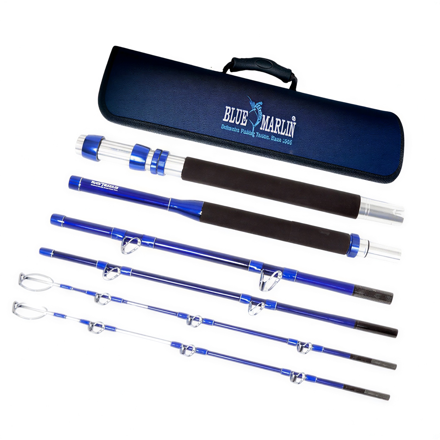 Blue Marlin rods, model 2105New are specially designed for marine traveler fishermen and are made from specialized mixed carbon for ultra-durable rods. The rings with reinforced frame are made of Zirconium Oxide, the reels holders are made of marine aluminum. The rod design is specially designed for the use of both multiplier and spinning reels. The rod is designed for Stand-Up, Trolling, Popping, Jig and is great for fishing on vacation. What’s new in this ultra-compact model is an additional glow-in-the-dark top for night fishing.
